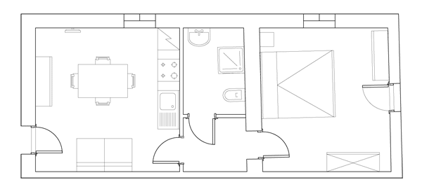 Uno dei cinque bilocali realizzati al piano terreno dell’antico casolare. Comodo con affacci sul giardino privato. Per tutta la famiglia e per godere del massimo relax. Accessibile ai diversamente abili.