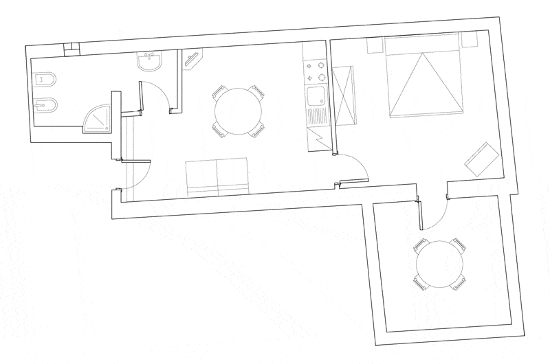 Il nostro fiore all’occhiello: un intimo bilocale con terrazza privata. Per una fuga romantica con o senza i vostri amici animali.