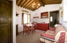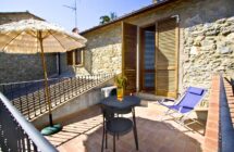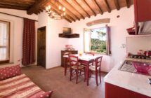 Al piano primo dell’antico podere è stato realizzato un elegante bilocale. Qui la camera da letto si affaccia su una terrazza che permette di godere del sole di mezzodì e dello splendido panorama della costa. Giornate particolarmente limpide permettono allo sguardo di protendersi oltre l’Isola d’Elba sino a distinguere chiaramente il profilo della Corsica.